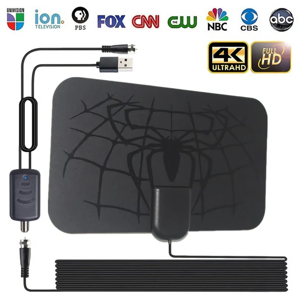 -Long Cable - The long coaxial cable makes it easy to place the antenna in the best reception spot in your home. The antenna can be powered either by an outlet or a TV’s USB port,Dimension:21*12*1cm/8.26in*4.7in*0.4in, Product package size :250*160 * 23mm,Flat antenna:21*12cm.