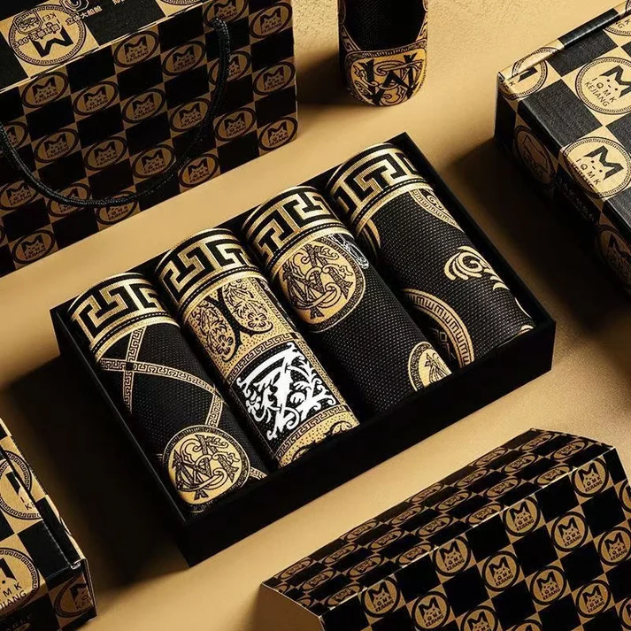 LUXURY BLACK-GOLD AESTHETICS: Features premium detailing with sophisticated patterns (Great Wall/Knight designs) that elevate basic boxer briefs to stylish essentials. The rich color scheme maintains its vibrancy wash after wash.